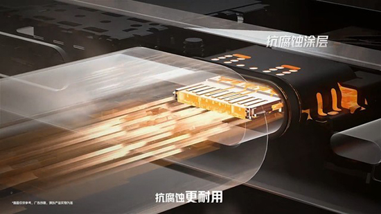 接口的耐久度對于快充也會產(chǎn)生影響,特別是時間久遠,鍍膜磨損后,快充的充電效率要打個折扣。iQOO 120W超快閃充在Type-C接口處使用了比黃金成本更高的稀有金屬鍍膜,大幅度提升了接口處的耐久度,這種稀有金屬鍍膜還實現(xiàn)了更好的防潮、防腐蝕性能,有效延長了Type-C接口的使用壽命。