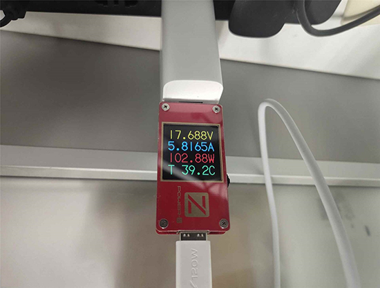 在充電過程中,我們通過Power-Z測得,前50%電量時 iQOO 5 Pro基本全程保持在100W+的充電功率,充電到90%時仍保持著30W+的充電功率,整個充電過程沒有絲毫的拖泥帶水,電量增長是肉眼可見的快。