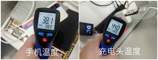 充電過程中,iQOO 5 Pro的充電頭最高溫度為44.5°C,手指能感受到余熱,但這個溫度也正常。手機的最高溫度為38.2°C,控制的顯然更出色一些。