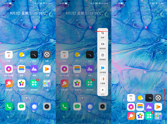 realme UI 1.0還提供了在桌面由外向內(nèi)滑動(dòng),實(shí)現(xiàn)桌面圖標(biāo)下沉,隨機(jī)懸停在某個(gè)應(yīng)用時(shí),即可打開對(duì)應(yīng)的應(yīng)用。realme 真我V3也支持智能側(cè)邊欄功能,向屏幕一劃就可以呼出,并且在這里也可以自定義設(shè)置你常用的一些快捷功能。realme UI 1.0還擁有許多豐富實(shí)用的小功能,例如全局暗色模式,支持系統(tǒng)和第三方應(yīng)用,覆蓋范圍更廣,夜晚觀看手機(jī)更加舒服,同時(shí)還支持根據(jù)日落時(shí)間自動(dòng)開啟暗色模式。