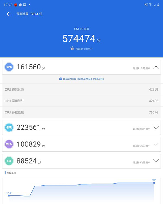 作為新一代旗艦,三星Z Fold2 5G搭載了驍龍865 Plus平臺,輔以12GB的運(yùn)存以及512GB的存儲。經(jīng)過安兔兔跑分測試,這部手機(jī)的最終得分為574474分,這一分?jǐn)?shù)也位于當(dāng)下的第一梯隊(duì),可以滿足廣大用戶的需求。