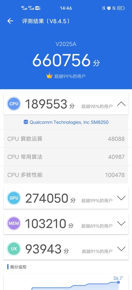 安兔兔跑分綜合了這款手機在CPU、GPU、內(nèi)存性能、UI系統(tǒng)等方面的表現(xiàn),因此在某種程度上更能體現(xiàn)iQOO 5 Pro的整體水平。這款手機跑分高達660756分,這個分數(shù)絕對是現(xiàn)在旗艦手機的一流水平,甚至高于部分同配置旗艦手機。