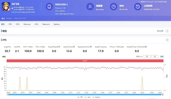 在《QQ飛車》這款游戲通過簡單的設(shè)置來體驗realme 真我V3 5G在競速游戲?qū)嶋H表現(xiàn),實際測試數(shù)據(jù)如下圖。