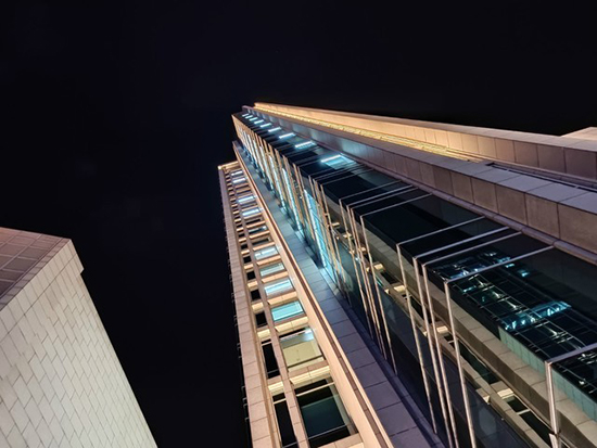 來看第二張,明暗的對比就比較強烈了,墻體的紋路細節(jié)都有保留,對高光的壓制也還可以,特別是天空的顏色處理的比較純凈。這里AI算法多幀合成起到關鍵作用,實現(xiàn)降噪、手持防抖的效果。