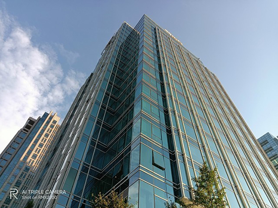 當然,在自然光線下,主攝的拍照能力明顯更好。從樣張分析,拍攝高樓、星巴克等建筑,畫面的寬容度、色彩白平衡控制的都還不錯,沒有出現(xiàn)明顯的偏色。拍攝時間處于下午5點左右,明暗光差比較大,不過這并沒有影響到最終成像的質(zhì)量。