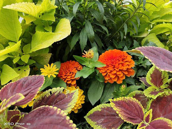華為P40 Pro+和vivo X50 Pro+都是“超大杯”旗艦,都擁有頂級配置,都搭載了5000萬像素主攝,而且在CMOS尺寸也沒有拉開明顯差距,所以兩者在白天的拍攝效果也很難分出高下。不過值得注意的是,華為P40 Pro+顯然更希望照片色彩更加濃烈,所以色彩飽和度顯得過高,導致色彩溢出,讓花朵中心的細節(jié)有一定丟失,而vivo X50 Pro+在色彩和細節(jié)方面平衡得更好,在色彩足夠討喜之余,中心細節(jié)也得到有效的保留。