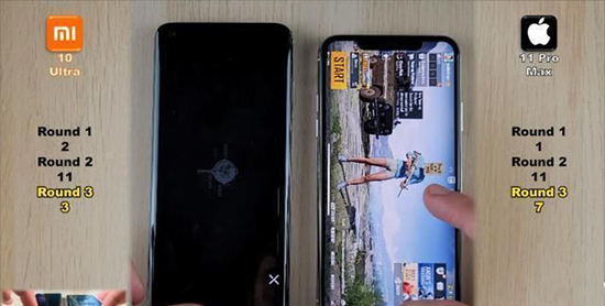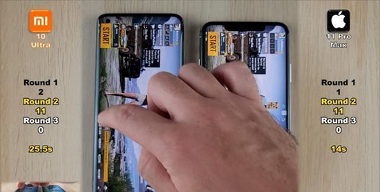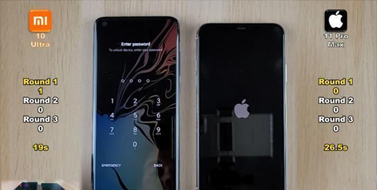 第一輪測試是將小米10至尊版和iPhone11ProMax進(jìn)行開機(jī)速度測試,從目前的測試結(jié)果來看,小米10至尊版和iPhone11ProMax之間,小米10至尊版的手機(jī)開機(jī)速度要比iPhone11ProMax快很多。當(dāng)小米10至尊版已經(jīng)在輸入密碼的界面,iPhone11ProMax仍然停留在開機(jī)的狀態(tài)中,所以第一輪測試小米10至尊版獲勝。