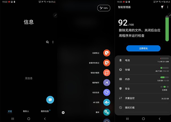 One UI雖然簡潔,但是其功能且是極為豐富的而且細(xì)節(jié)部分也得到了用心處理。像換機(jī)助手、全局搜索、智慧識(shí)屏、護(hù)眼模式、暢聯(lián)分享、自定義顏色偏好等等當(dāng)下智能手機(jī)常見的功能,三星Note20 Ultra 5G的One UI 2.5均有搭載。