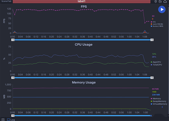 在屏幕自適應(yīng)模式下,如果APP支持并開啟120Hz后,屏幕會自動調(diào)整幀率。并且,配合高通驍龍865 Plus,無論是CPU使用率還是幀率表現(xiàn),都非常平穩(wěn),在實際打斗過程中,也并沒有出現(xiàn)掉幀情況。