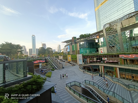 不過(guò)如果想要更好的體現(xiàn)這顆天璣800U和realme的后期算法水平,除了主攝樣張以外,還需要進(jìn)行更多元化的拍攝對(duì)比。為此,在同一場(chǎng)景下我還拍攝了一張超廣角照片。與主攝樣張一樣,這次的realme真我X7的大角度成像依舊比較穩(wěn),色彩和白平衡基本與主攝樣張一致,并且由于天璣800U超強(qiáng)的后制效果,可以呈現(xiàn)更深層次的景象之余,畫(huà)面整體也沒(méi)有出現(xiàn)令人失望的畸變。