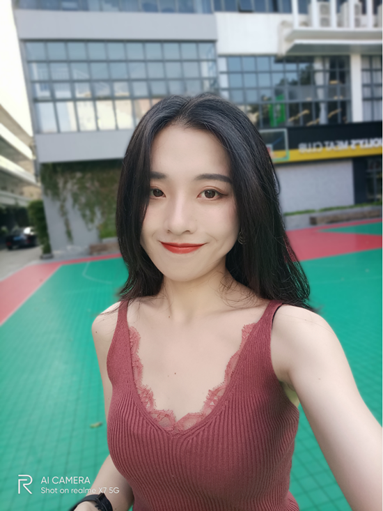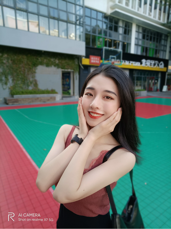有趣的是,此次在realme真我X7中還加入了一顆人像鏡頭?;蛟S是最大限度的發(fā)揮出天璣800U的在人臉對(duì)焦、識(shí)別上的優(yōu)勢(shì),這兩者結(jié)合下給出的人像拍攝方案還是非常不錯(cuò)的??梢钥吹剑诤笾萌讼衽臄z時(shí)實(shí)際成像畫(huà)面偏暖,很好的捕捉到小姐姐臉部白里透紅的狀態(tài)。而且在后期AI美顏上,也沒(méi)有過(guò)度用力,在天璣800U強(qiáng)大AI運(yùn)算能力上,給出了恰到好處的美顏效果,整體視覺(jué)效果還是比較出色的。
