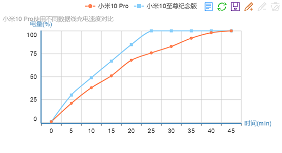 緊接著,又是5分鐘,小米10至尊版電量已經(jīng)來到57%,繼續(xù)充電14分鐘,電量達到100%。整個過程中,120W有線快充可以讓小米10至尊紀念版的4500毫安時大電池,從1%回滿血至100%,僅僅消耗23.5分鐘的時間,效率極高。
