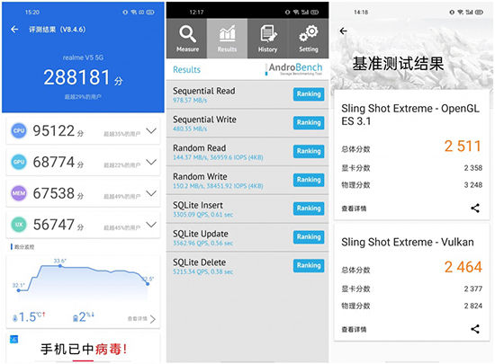 此外,我還用3DMark跑了下分,而真我V5分別獲得了2511和2464的成績(jī)。