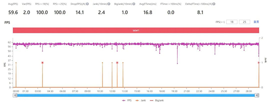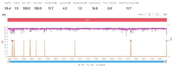 首先是極限(60幀)幀率+HDR高清畫質(zhì),能不能滿幀運行是過去旗艦處理器性能的一條基準(zhǔn)線,K30Pro一局游戲下來平均59.4幀,波動1.9幀,表現(xiàn)相對流暢;而開到極限+超高清畫質(zhì)則是平均59.6幀,波動2幀,流暢程度甚至比前者更好。