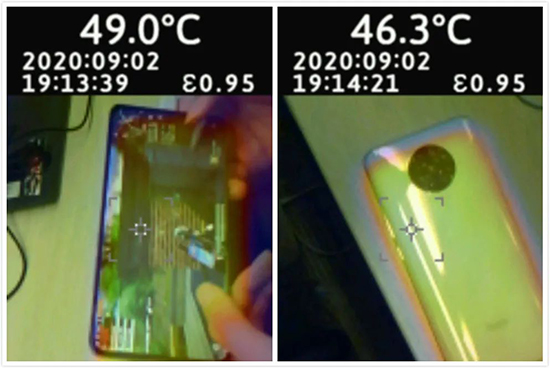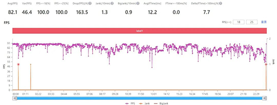 不過嘗試了90幀模式+HDR高清畫質(zhì)之后,則是探到了這顆芯片的性能上限,兩次運行都只能有平均82幀左右,而且波動幅度比較大。對于手機(jī)的散熱壓力也非常大,實測一局游戲后背面最高46.3℃,正面最高49℃,中途甚至觸發(fā)過手機(jī)的高溫告警。