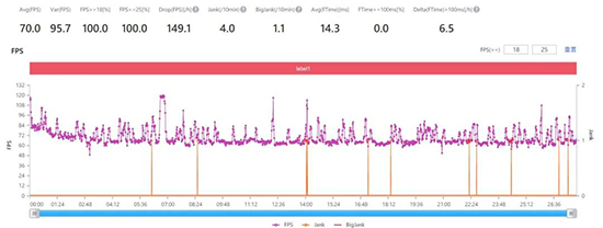 另一次則是解鎖120幀以后,稍微有點意外的是只能跑到平均70幀,只有在設(shè)置、暫停界面能跑滿,可能芯片對這個游戲的調(diào)度并不積極。