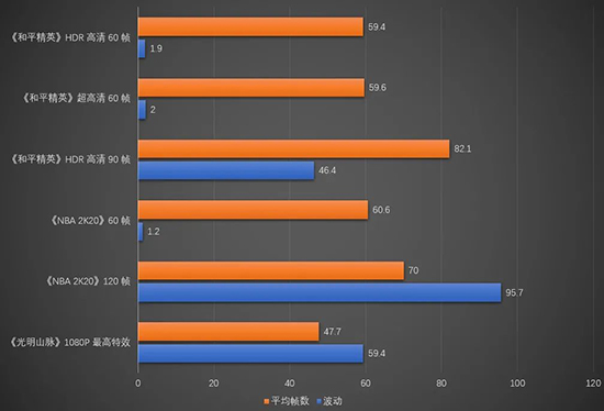 最后還測了表面上是一款游戲、但除了拿來跑測試之外基本不會有人玩的《光明山脈》,1080P分辨率+畫質(zhì)全開,10分鐘下來平均47.7幀,已經(jīng)接近許多驍龍865機(jī)型的表現(xiàn)。