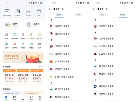 以O(shè)PPO?Pay(刷銀行卡)為例,點擊進入OPPO?Pay之后按照系統(tǒng)提示進行綁卡,即可實現(xiàn)NFC快捷支付。Reno4?Pro可支持多數(shù)銀行的儲蓄卡、信用卡。綁卡方式與微信、支付寶的快捷支付相同,填寫信用卡或儲蓄卡信息,完成短信驗證即可開通成功。?