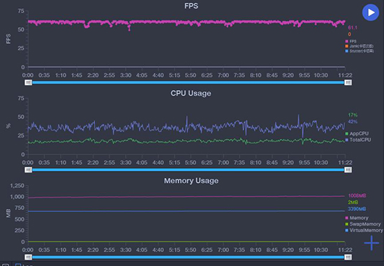 我們再來看看OPPO Reno4 Pro在游戲方面的表現(xiàn)。這里,我們選取的是《和平精英》與《王者榮耀》兩款最流行的競技類手游進行測試,測試中均開啟Reno4 Pro所能開啟的最高畫質(zhì)進行測試。從幀數(shù)曲線來看,《和平精英》的表現(xiàn)比較穩(wěn)定,能夠十分穩(wěn)定的跑在40幀的天花板幀數(shù)上。當(dāng)然,這與畫質(zhì)有關(guān)?!锻跽邩s耀》在最高畫質(zhì)下,也能相當(dāng)流暢的在高幀率之下運行。從這兩個游戲的測試數(shù)據(jù)來看,OPPO Reno4 Pro足可以應(yīng)對市面上所有游戲的挑戰(zhàn)。畢竟其所采用的驍龍765G處理器,本身就具備全新水平的Snapdragon Elite Gaming特性,能夠有效提升手機的游戲體驗。