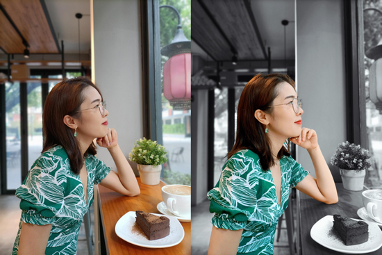 另一個(gè)新鮮功能人像留色和夜景光斑人像模式。打開OPPO Reno4 SE的人像留色功能后除了人物主體外,背景內(nèi)容全部變成黑白,和留有顏色的人物主體有著相當(dāng)強(qiáng)烈的反差,更好地突出主體,這時(shí)候拍出來的照片更有特色。夜景光斑人像則是在虛化的基礎(chǔ)上,讓背景光線優(yōu)化成更有藝術(shù)感的效果,就這功能而言相信能吸引不少人。