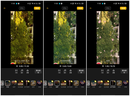 當(dāng)我們通過電影模式錄完視頻后,打開Soloop即錄的APP,點擊“快速成片”,選擇素材,即可開始視頻的編輯。在最下方可以看到很多模式,選擇閑適、約定、追夢等右上角帶有電影圖標(biāo)的模式,即可打造屬于你的電影~而且,Soloop即錄擁有多款經(jīng)典電影濾鏡,字幕、配樂、旁白均已就位,生活視頻秒變電影,是不是瞬間上流起來了呢~