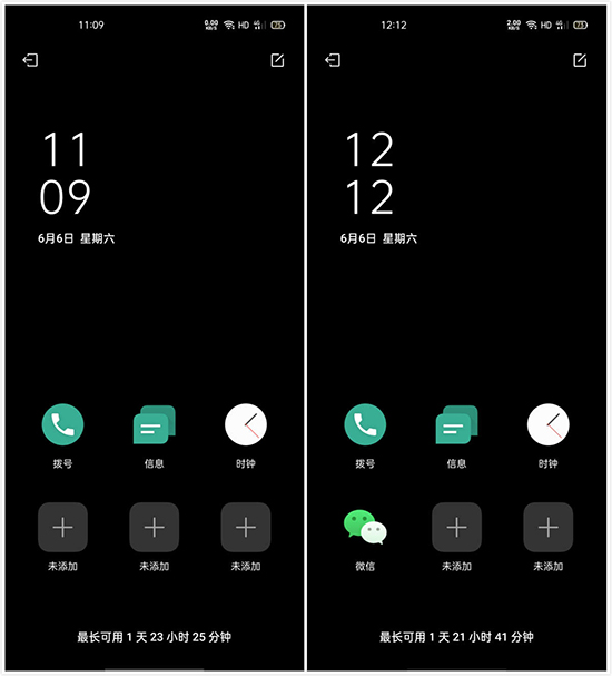 開啟“超級省電模式”后,系統(tǒng)大部分功能將被限制,并且僅允許同時(shí)六個(gè)應(yīng)用使用(快沒電了還要啥自行車呢對吧hh)此時(shí)將自動(dòng)開啟“深色模式”,在“+”處可以選擇所必需的APP,以備急用。