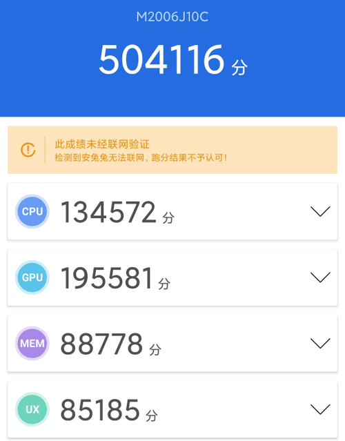 經(jīng)過性能測試,Redmi K30至尊紀念版的最終得分為504116分,也達到了旗艦級別的水平。
