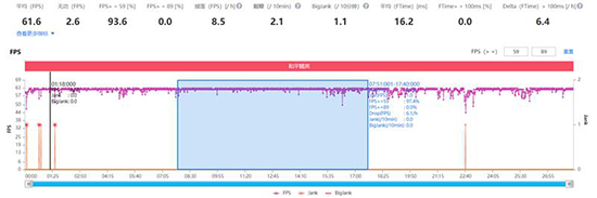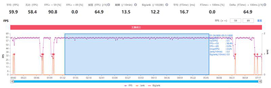 在《王牌戰(zhàn)士》中開(kāi)啟最高畫(huà)質(zhì),并排除界面切換造成的假掉幀現(xiàn)象,整個(gè)游戲?qū)诌^(guò)程中真我X7 Pro的幀數(shù)始終穩(wěn)定在60幀左右,低于60FPS的時(shí)間僅占總測(cè)試時(shí)間的1.6%,足見(jiàn)其游戲時(shí)的穩(wěn)定性。
