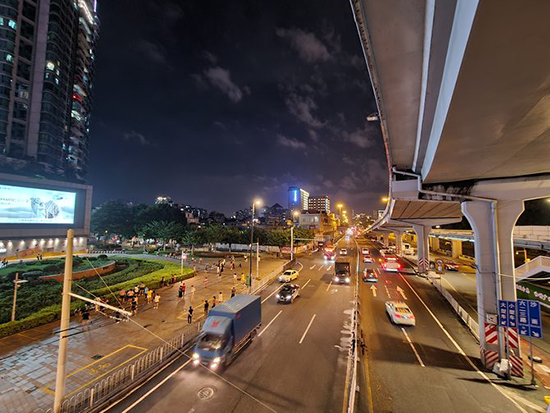 三星Galaxy Note20 5G在夜景拍攝時,即便在光線非?;璋档膱鼍跋拢琅f可拍攝出較為明亮的照片效果,類如光源發(fā)射出的光線都可捕捉,對光源的邊緣有較好的控制,帶來了整潔的畫面效果,未產(chǎn)生散光或者偏光的情況。