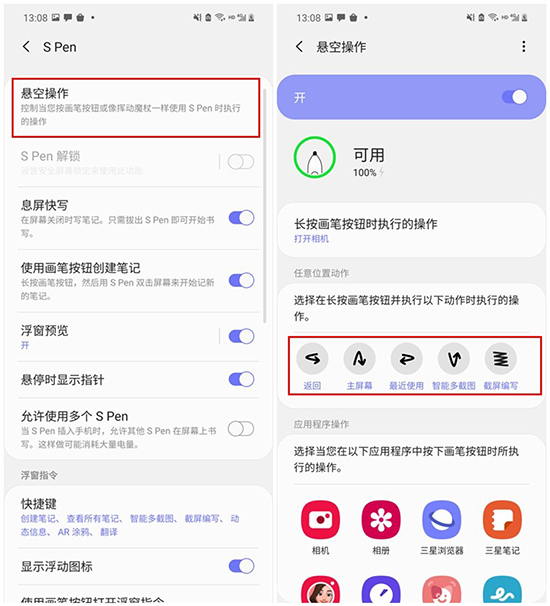 比較驚喜的是,Galaxy Note20 5G手機(jī)的S Pen增加了一種懸空手勢操作方式,給人更為前沿的科技感人機(jī)交互體驗(yàn),長按畫筆上的按鈕并空中畫出不同的動(dòng)作時(shí),此時(shí)手機(jī)就會執(zhí)行返回、主屏幕、最近使用、智能多截圖、截屏編寫等功能,繪畫動(dòng)作設(shè)計(jì)的比較貼合功能的日常使用習(xí)慣,更易于快速上手掌握。