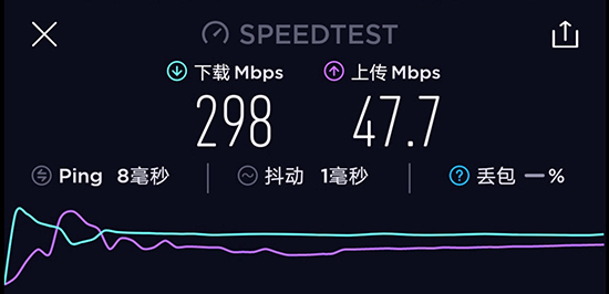 我還特地用網(wǎng)絡(luò)測速軟件“speedtest”,測量了華為暢享20 Plus的實時網(wǎng)絡(luò)狀況。測試地點辦公樓眾多,離市中心也比較遠。根據(jù)數(shù)據(jù)顯示,華為暢享20 Plus下載速率為298Mbps。一般來說,未開通5G套餐,下載速率上限為300Mbps,所以華為暢享20 Plus的298Mbps十分接近上限,5G網(wǎng)絡(luò)的高速特性明顯。