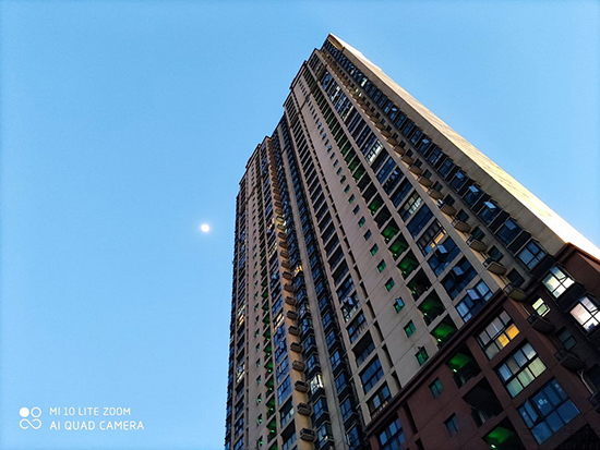 那么,它是如何做到的呢?一方面來說,雖然是“青春版”,但這枚潛望式長焦鏡頭擁有內(nèi)置的棱鏡+鏡組雙光學(xué)防抖機(jī)構(gòu),這是能夠做到手持遠(yuǎn)攝的最先決條件;其次,仔細(xì)觀察整個變焦過程中的EXIF信息我們可以看到,小米10青春版的遠(yuǎn)攝算法會同時用到主攝和長焦鏡頭成像,而非單獨(dú)以長焦頭數(shù)碼變焦,這在一定程度上增強(qiáng)了它的畫質(zhì)表現(xiàn);最后,從我們本身的實(shí)際感受來說,小米10青春版的AI相機(jī)也能在畫面主體從建筑物變成月亮之后,自動地降低感光度、延長曝光時間,從而改善畫面的噪點(diǎn)以及拍下更多細(xì)節(jié),相當(dāng)于本身也有針對“拍月亮”做了一些優(yōu)化。