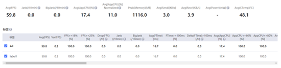 在《王者榮耀》當中,我將畫質達到全開,最終得到59.8平均幀率,并且全程沒有出現卡頓等情況。