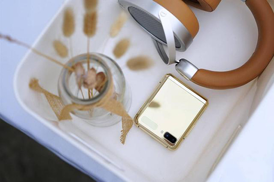 三星Galaxy Z Flip折疊后的尺寸為73.6*87.4*17.3mm,也就跟個(gè)眼影盒差不多大,帶來了非常好的便攜性。