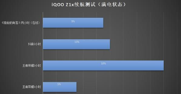 iQOO Z1x搭載了一塊5000mAh大電池,在整個5G手機市場中非常少見,相比主流4000mAh電池,iQOO Z1x多出來的1000mAh能起到怎樣的作用?話不多說,直接上測試。此次的測試項目包括播放2小時《隱秘的角落》、刷2小時抖音、再打3小時《王者榮耀》的情況下,追加了一小時。在長達(dá)8小時的續(xù)航測試中,iQOO Z1x剩余58%電量,這樣的成績在5G手機市場中的表現(xiàn)著實驚艷。