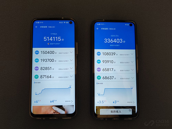 安兔兔評(píng)測(cè)(版本:V8.4.3),8GB+256GB版本的iQOO Z1得分514115,8GB+256GB版本的iQOO Z1x得分336403,前者在CPU、GPU、MEM、UX均碾壓后者。