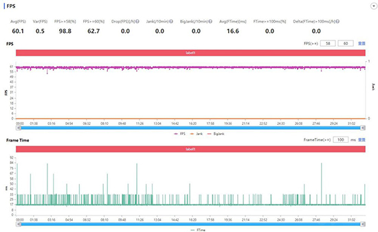 iQOO Z1的平均幀率為60.1【即頂部“Avg(FPS)”的值,平均幀數(shù)越大,動(dòng)態(tài)細(xì)節(jié)越豐富】,略高于iQOO Z1x。