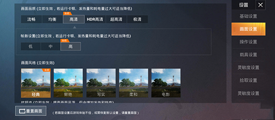 在我們熟悉的《和平精英》游戲中,默認畫質(zhì)為高清畫質(zhì),高幀率,暫未開放HDR高清與超高清,而在將畫質(zhì)設(shè)置為流暢之后可以打開超高幀率。