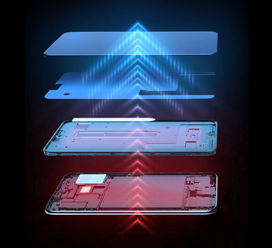 在我們實際的游戲體驗中,并未感受到手機有發(fā)燙的現(xiàn)象,這得益于中興天機Axon 20的三重散熱系統(tǒng),9個溫度傳感器可以精準感知熱量,液冷散熱、納米碳纖維導(dǎo)熱墊以及大面積石墨材料覆蓋,可以保證手機快速傳到熱量,始終冷靜流暢。