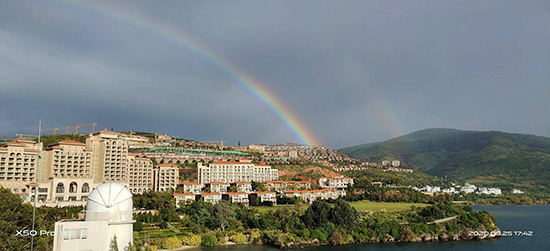 隨手一拍,vivo X50 Pro依舊可以清晰記錄下?lián)嵯珊峡盏拿利惒屎?。從?shí)拍樣張來(lái)看,畫面整體不但容納篇幅較大,具有一種寬闊的震撼美感,而且還擁有著很高的成像解析力度和色彩還原真實(shí)度。不管是遠(yuǎn)處的藍(lán)天、青山,還是近處的彩虹、建筑,一切都顯得既真實(shí)又略微帶著點(diǎn)童話色彩,視覺(jué)觀感相當(dāng)出眾。