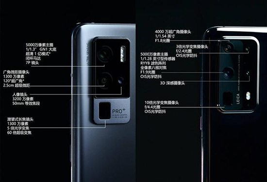 拍照配置方面,兩者都采用了“底大一級”的策略,其中vivo X50 Pro+搭載了一顆5000W像素主攝,傳感器面積為1/1.3英寸,支持f/1.8光圈和OIS光學防抖。華為P40 Pro+同樣采用了一顆5000W像素主攝,傳感器面積為1/1.28英寸,支持f/1.9光圈和OIS光學防抖。另外在像素四合一下,兩者的單像素面積分別為2.4μm和2.44μm。