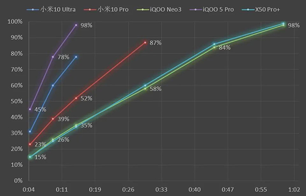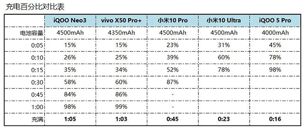 對比iQOO的120W,小米10至尊紀(jì)念版最大的優(yōu)勢,其實是55W無線快充和快充兼容性,綜合充電體驗無出其右: