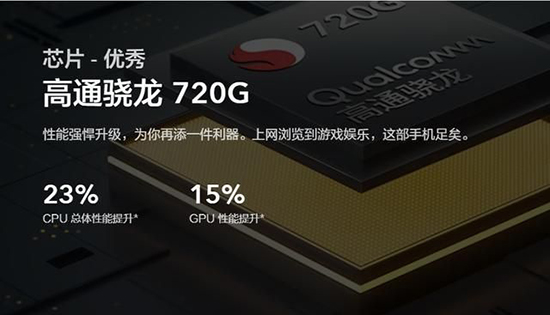 來看下驍龍720這款處理器,驍龍720是712的升級產(chǎn)品,相比驍龍712來說,720在CPU方面提升了23%,GPU方面提升了15%,整體的性能較上一代來說有著很大的提升。不過這款處理器是一顆4G芯片,所以IQOO U1也是一款4G手機(jī),這一點(diǎn)比較遺憾。