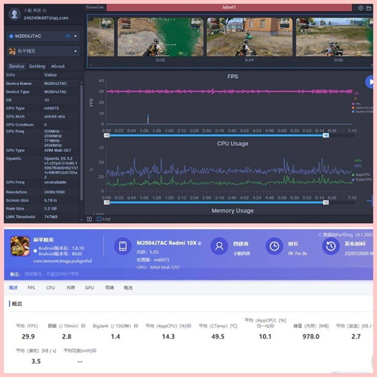 王者榮耀平均幀率為60.1,和平精英為29.9。由圖可見FPS曲線一直處于平穩(wěn)狀態(tài),并未出現(xiàn)掉幀現(xiàn)象??偟膩碚f,Redmi 10X 5G的游戲性能是非常出色的,天璣820的表現(xiàn)優(yōu)異,已經(jīng)能夠比肩旗艦水準(zhǔn)。