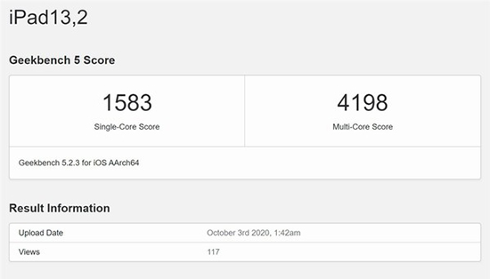 值得一提的是,iPhone 11所搭載的A13 Bionic芯片在Geekbench的單核和多核基準測試中得分為1334和3512。相對而言,A14 Bionic芯片的得分表現(xiàn)有了一定提升。另外,Geekbench指出,A14 Bionic芯片頻率為2.99GHz,高于A13 Bionic芯片的2.67GHz。