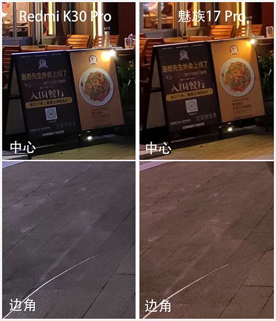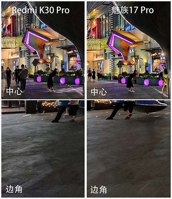 即便不講上面的理論分析,只從同場景對比樣張的表現(xiàn)來看,在夜景畫質(zhì)上魅族17 Pro依然不是Redmi K30 Pro的對手。除了在夜景模式中央畫質(zhì)上魅族17 Pro略勝一籌之外,別的情況下Redmi K30 Pro依然擁有相對更好的畫質(zhì)表現(xiàn)。不過拋開畫質(zhì),我們一直知道魅族在夜景的觀感上一直有著不錯的調(diào)校水準(zhǔn),那么這回魅族做得怎么樣呢?