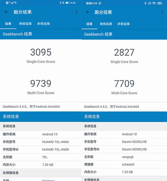 在Geekbench 4測(cè)試中,麒麟820單核跑分為3095分,多核跑分達(dá)9739分,而驍龍765G單核和多核成績(jī)分別是2827和7709分,兩款手機(jī)差距十分明顯。僅從跑分結(jié)果來看,前者提供更強(qiáng)的CPU性能,這意味著榮耀X10有著更快的處理速度,保證手機(jī)的流暢使用。
