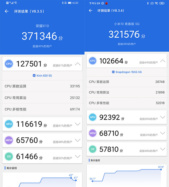 左:榮耀X10 右:小米10青春版