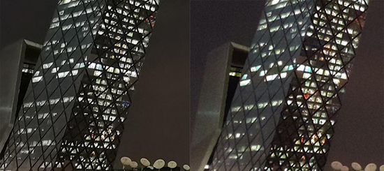 這組樣張拍攝于清晨4:55,剛剛?cè)粘?,雖然當時天空部分亮度較高,但是有建筑物遮擋的部分亮點依然較低,明暗對比度較高。我們可以看到,這兩款手機都保持相當不錯的觀感,但是榮耀X10依托于RYYB濾光矩陣和更大的感光元器件,呈現(xiàn)出了更多暗部細節(jié)。這一點,在樣張底部部分顯得十分明顯。