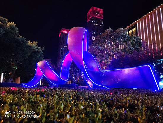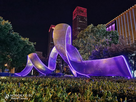 再看這組夜景樣張,榮耀X10表現(xiàn)十分穩(wěn)定,不僅夜空部分更為純凈,而且霓虹燈部分也沒有出現(xiàn)過曝或涂抹現(xiàn)象。注意,背后的高樓成像也十分清晰。但是小米10青春版在這部分中出現(xiàn)了明顯的涂抹現(xiàn)象,色彩有所溢出,而且偏色嚴重,后景部分成像也較為模糊。